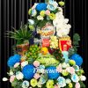 Hoa tươi cao cấp được trang trí nổi bật, giúp bộ tráp trở nên cực kỳ sang trọng, rực rỡ và lung linh trong từng khung hình.